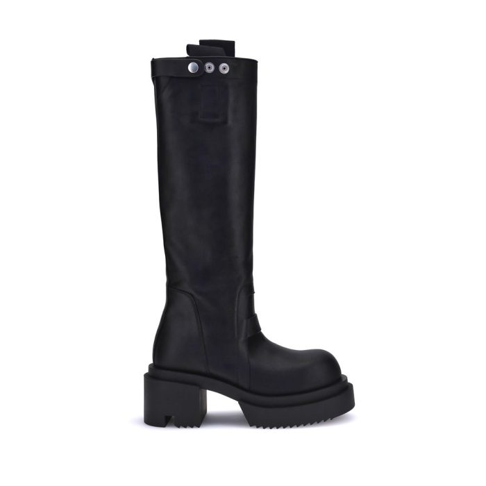 Rick Owens’ Platform Boots feature a platform sole and slip-on style for comfort and a contemporary look. They feature a buttonhole at the heel for easy donning, silver-tone metal trim, and a round toe that completes the bold and sophisticated design.