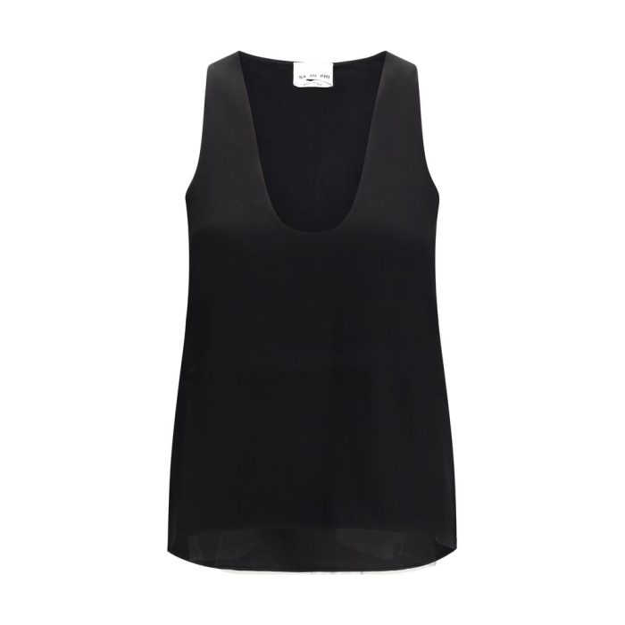 The Sa Su Phi Top is a bright and sophisticated garment featuring a round neckline and sleeveless design that enhances the silhouette with a bright, modern touch.