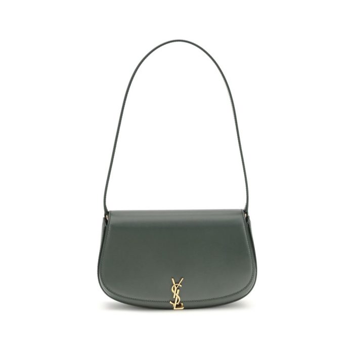 The Voltaire mini Shoulder Bag by Saint Laurent is an elegant crescent-shaped bag crafted from calfskin with a lightly polished finish. Bronze-colored metallic parts add a warm, vintage touch, while the Cassandre magnetic zipper closure provides security and practicality. Inside, a flat pocket completes the functionality of this compact and refined accessory.