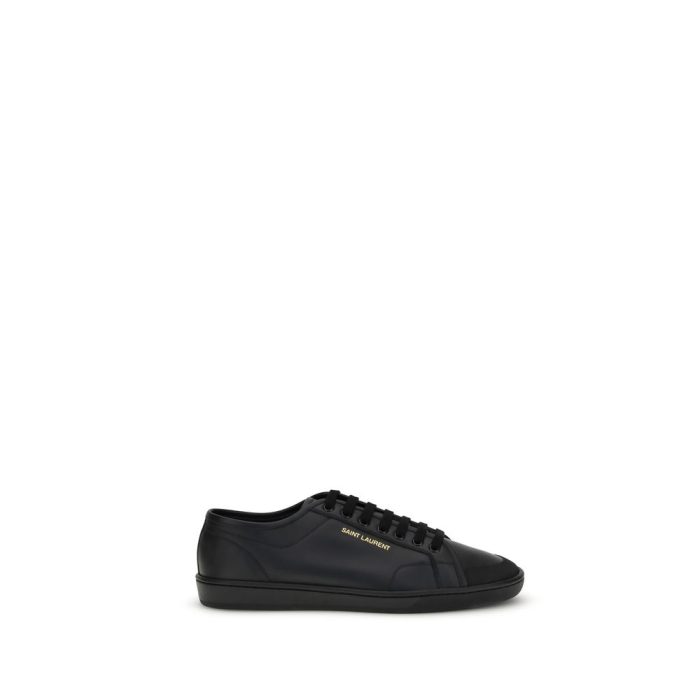Saint Laurent’s Gym Sneakers are a contemporary classic, featuring a lace-up closure and a gold SAINT LAURENT signature on the side that adds a touch of understated luxury. The flat rubber sole ensures comfort and practicality, making this model perfect for an urban and elegant style.