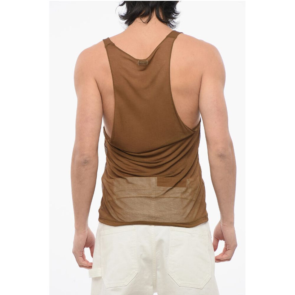 Saint Laurent Viscose Sheer Tank Top with Deep Neckline