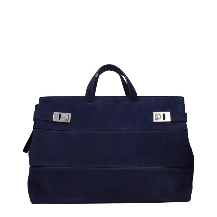 The product with MPN 2414060766560 and code F85619 suede in blue is a handbags designed by Salvatore Ferragamo. It has features like front logo, side buttons, adjustable shoulder, removable shoulder, vintage effect.