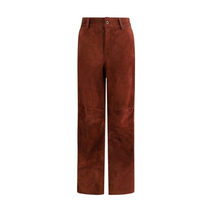 Salvatore’s suede Pants combine elegance and character with a high-waisted design and straight leg. Featuring a front button and zipper closure, they have belt loops, two side welt pockets and two patch pockets on the back. The raw cut enhances the essential and contemporary style.