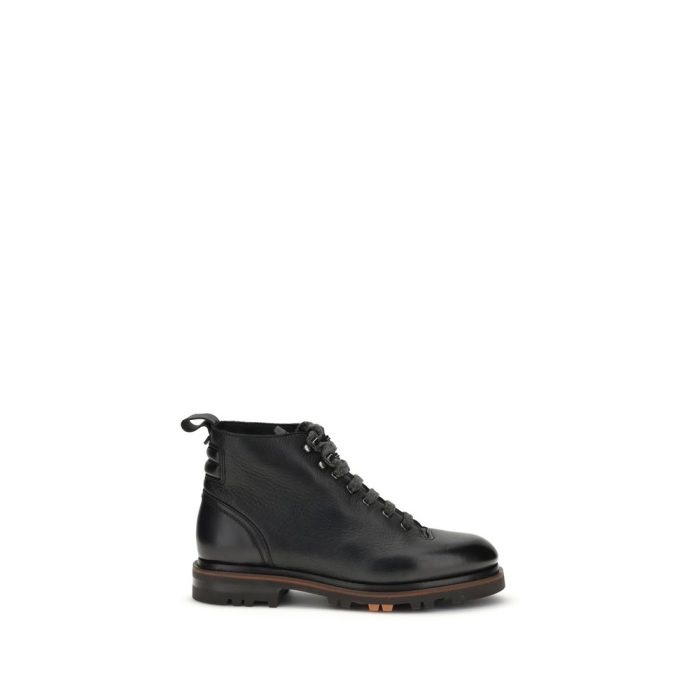 Santoni Black Calf Leather Bos Taurus Lace-Up Boots
