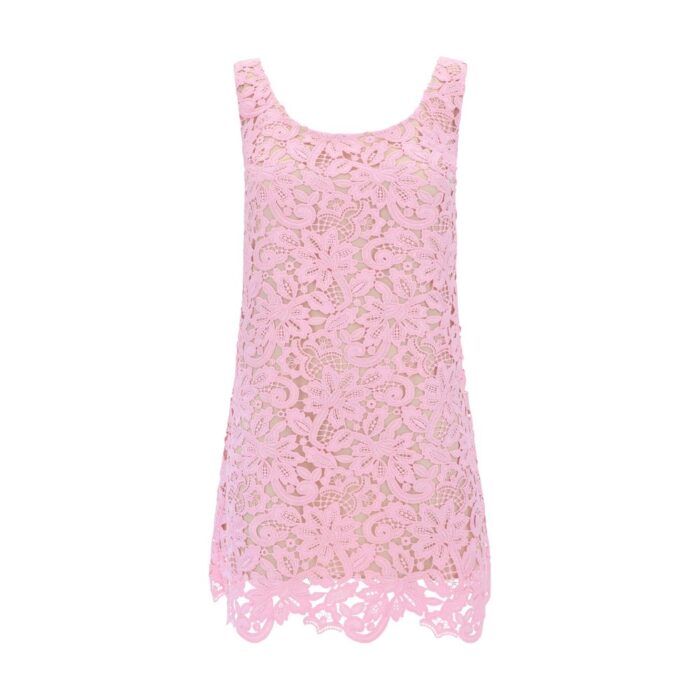 Mini Dress by Self-Portrait, sleeveless design, back zipper closure, monochrome floral lace pattern with perforated details, dress features opaque slip, regular fit.