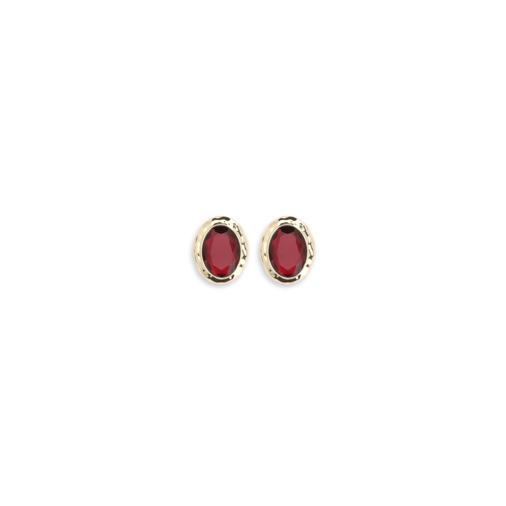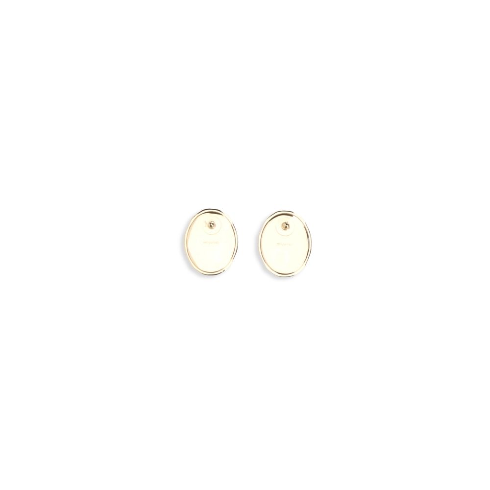 The Earrings by Self-Portrait feature a gold-plated brass frame with a vintage allure, showcasing an elegant red enamel oval centerpiece. The stud design, with post support, makes them versatile and perfect for both day and night.