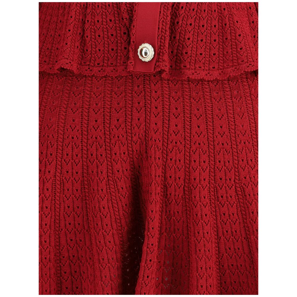 Self-Portrait’s Pointelle Knit Short Dress is a feminine and sophisticated piece with handcrafted charm. Crafted with a delicate crochet design, it features a front button closure and two patch pockets on the chest. Gold-colored buttons add a touch of light and sophistication, completing a look with a romantic and contemporary flair.