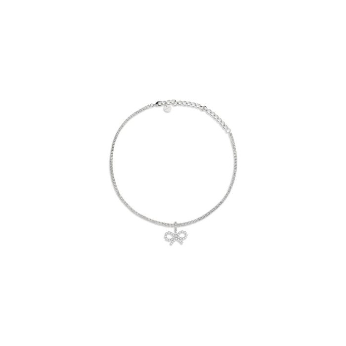 Necklace by Self-Portrait with an elegant and refined tennis design. It features a lobster clasp closure for a secure and comfortable fit. The bow pendant, embellished with sparkling jewels, adds a touch of brightness and femininity, making this jewelry perfect for completing sophisticated and refined looks.