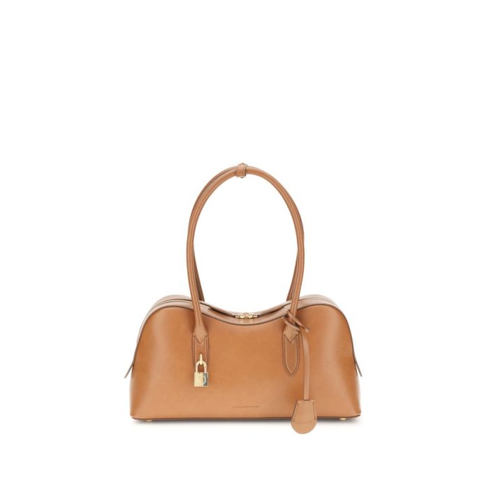 Stella McCartney’s medium Ryder Shoulder Bag is a practical and refined accessory made of leatherette in keeping with the brand’s sustainable commitment. Featuring an embossed logo and enhanced by a logoed padlock on the front, it combines elegance and functionality. Featuring two round handles and a zippered closure, it has a lined interior with a patch pocket and protective metal feet at the base, perfect for durability and protection.