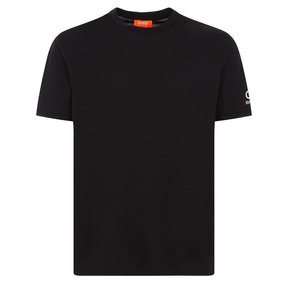 Suns, cotton t-shirt, stretch, black, crew neck with elasticated sleeves and logo on the left sleeve.