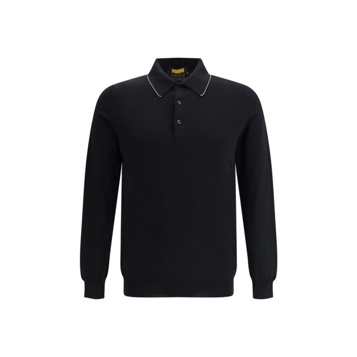 The Svevo long-sleeved cotton Polo Shirt is an elegant and refined garment. It features a classic collar and buttons on the front, which enhance its sober and sophisticated design. The ribbed cuffs and ribbed hem ensure a comfortable and well-defined fit. The contrasting details add a modern and distinctive touch, making this polo a versatile garment, perfect for wearing in both casual and semi-formal contexts.