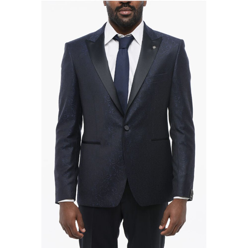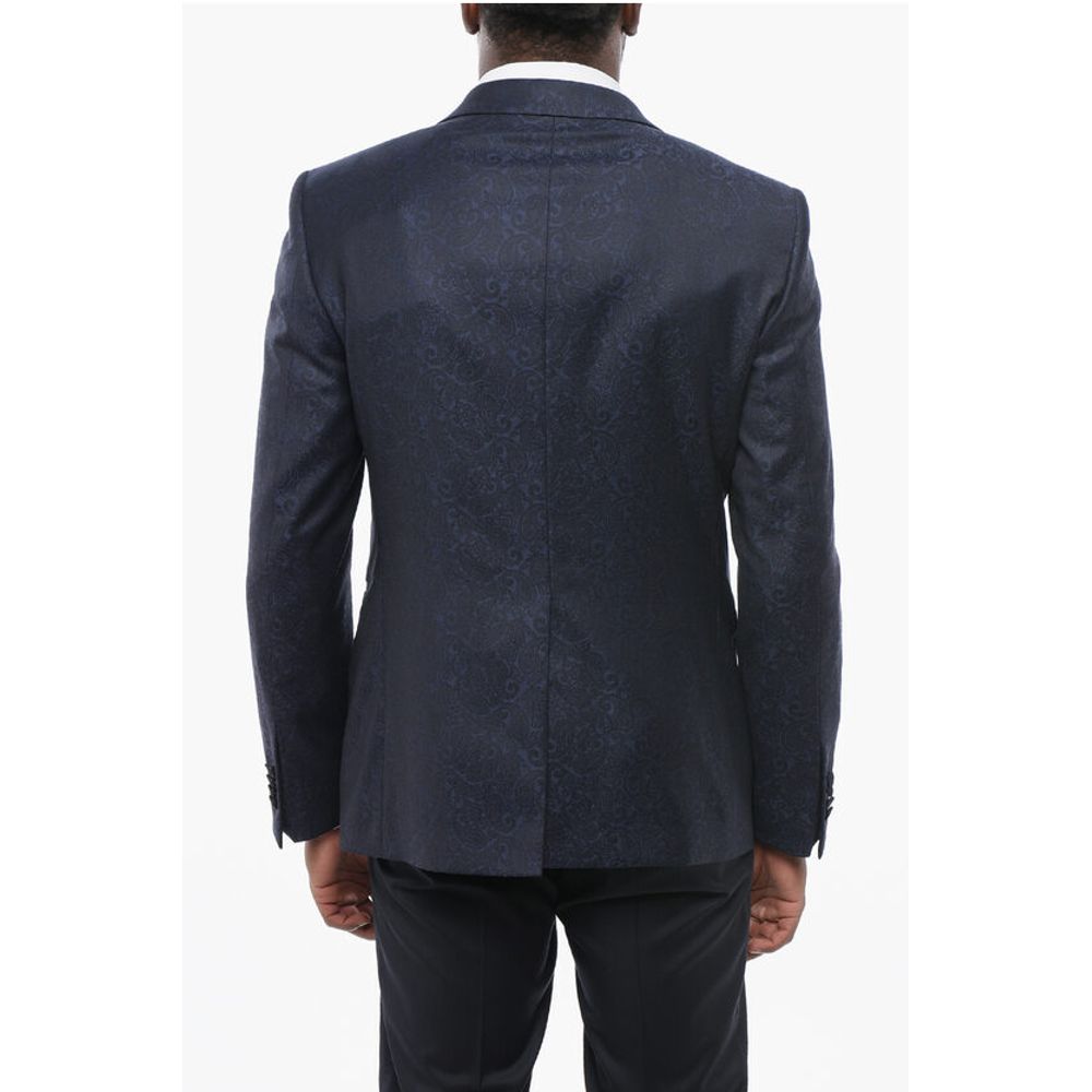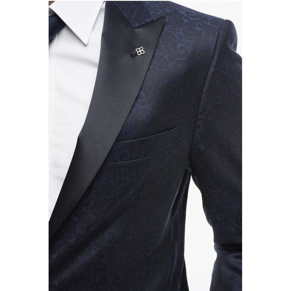 Tagliatore Paisley Patterned Jacquard Wool Blazer with Satin Lapel