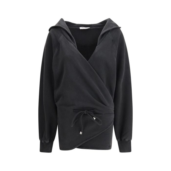 The short Dress with hood By The Attico channels the brand’s bold attitude through a fluid, contemporary silhouette. The V neckline lends a clean, sensual touch, while the hood with drawstring detail adds a modern, sporty edge. Long sleeves balance the shape, blending comfort with an urban, directional spirit. The Dress captures The Attico’s distinctive and forward-looking aesthetic.