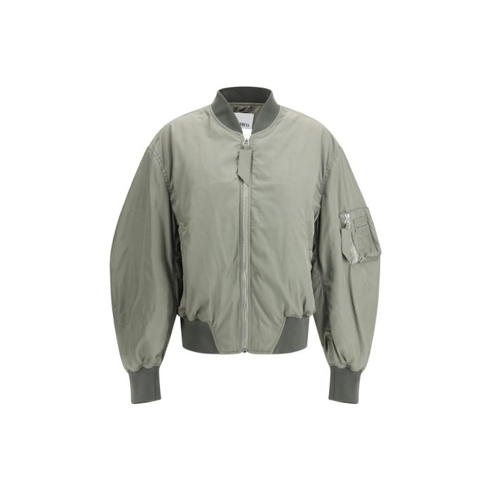 The Nylon bomber Jacket by The Attico is a trendy, sporty garment designed for those seeking an urban, modern style. Featuring a front zipper closure, it offers a practical and dynamic fit. The ribbed collar, along with the ribbed cuffs and hem, gives a classic bomber jacket structure and look, while the two side welt pockets add functionality. A zippered pocket on the left sleeve completes the design, offering an additional style detail.