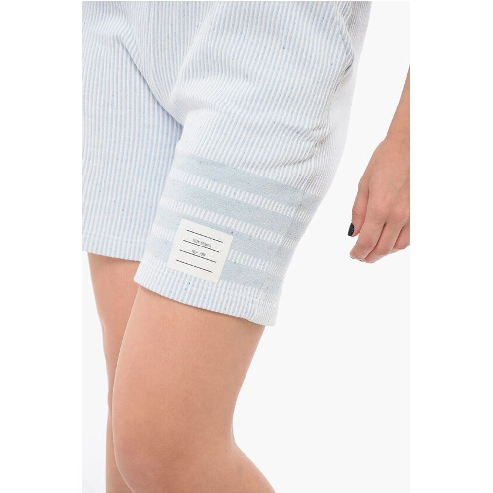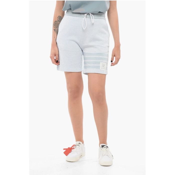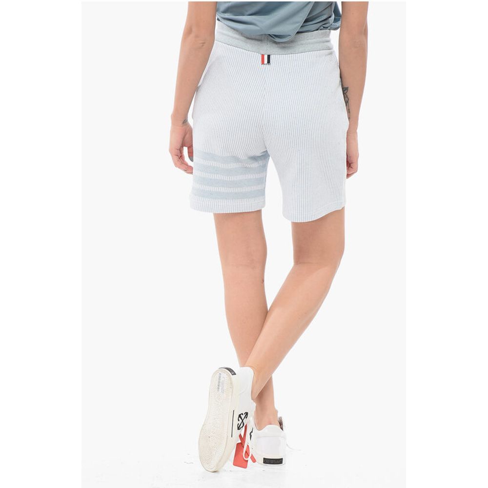 Thom Browne Drawstringed Silk Blend Shorts with Awning Motif