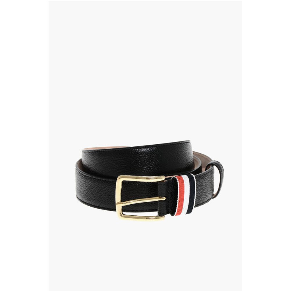 Thom Browne Grain de Poudre Leather Belt with Iconic Detail 35mm