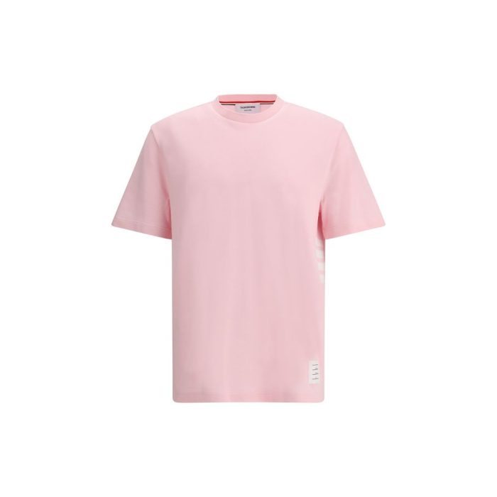 The Cotton T-Shirt by Thom Browne blends simplicity with sartorial precision. The ribbed crew neck and signature side bands outline a clean silhouette, while the front logo patch and tricolour label on the back express the brand’s refined identity. A timeless piece that embodies everyday elegance and meticulous craftsmanship.