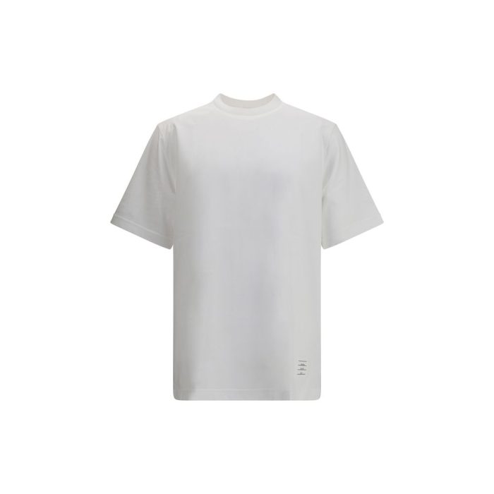 Thom Browne’s oversized T-Shirt combines an essential aesthetic with distinctive details. Made with a ribbed crew neck, it features two side slits that add comfort and movement. An iconic patch stands out on the front, while colorful bands on the back lend an unmistakable touch, discreetly signing off the brand’s style.