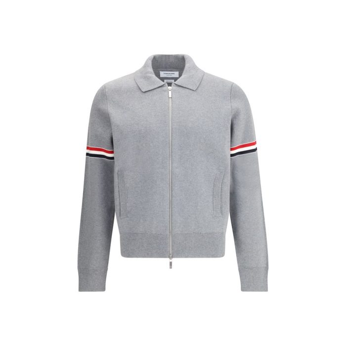 Zip Sweatshirt by Thom Browne features a ribbed collar and a double-slider front zipper closure. Ribbed cuffs and hem ensure a comfortable fit, while side welt pockets combine practicality and style. Completing the design is the iconic colorful band on the sleeves, a hallmark of the brand.