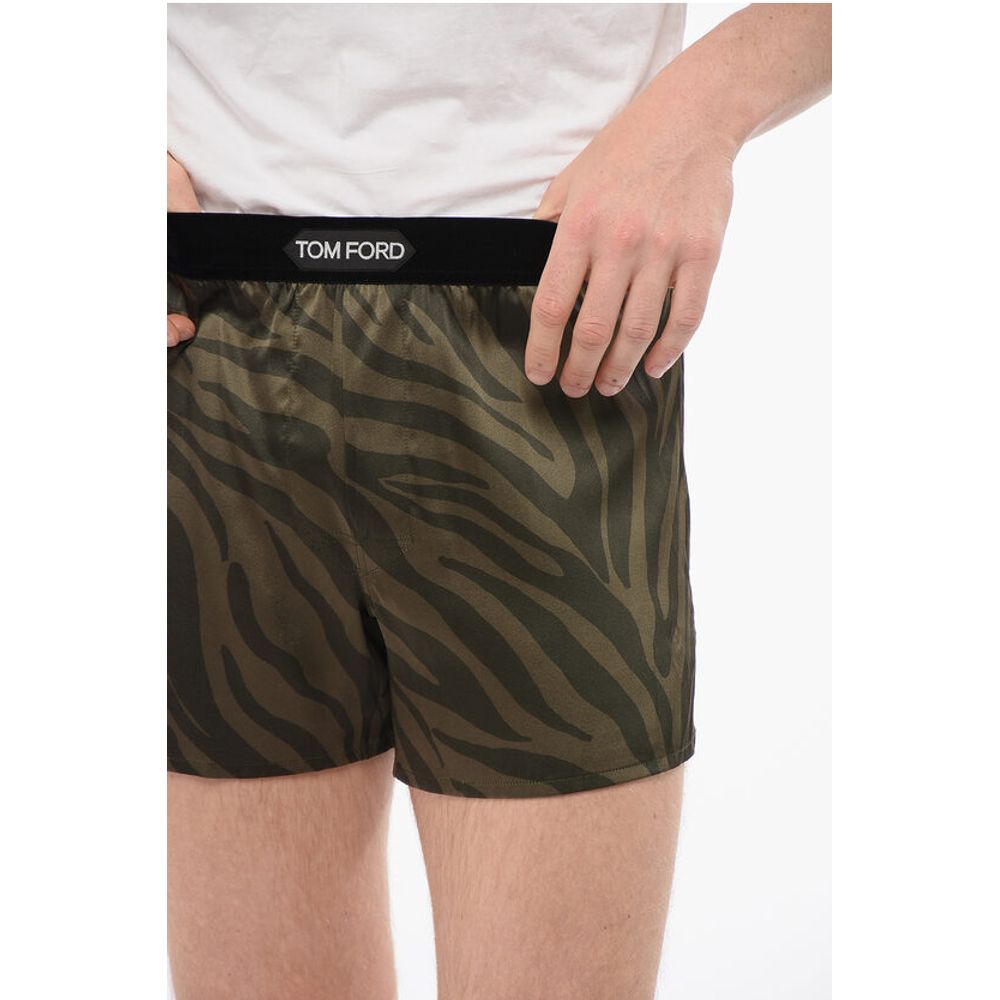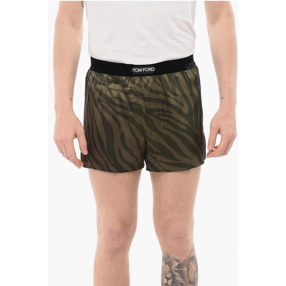 Tom Ford Animal Patterned Silk Satin Boxer with Velour Detail