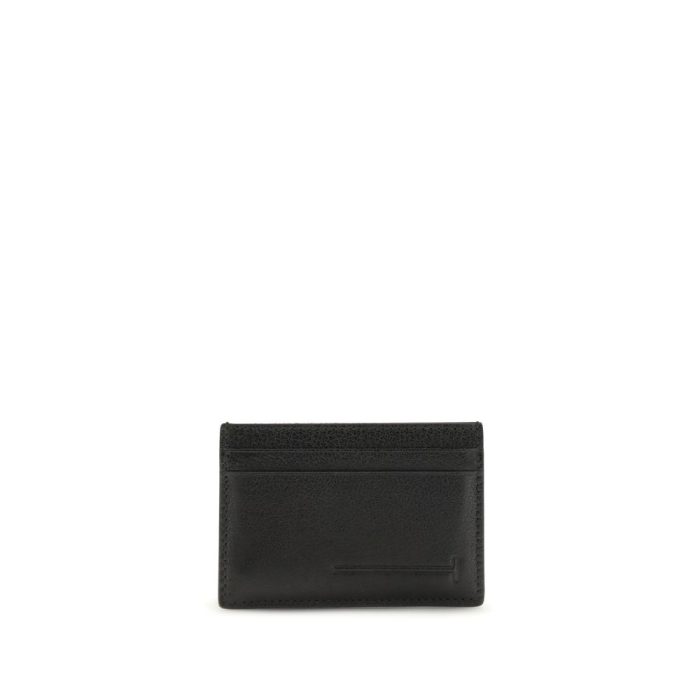 The leather Card Holder by Tom Ford combines essentiality and style in a compact format. Made of high-quality leather, it features an elegant embossed logo on the front and the brand’s signature on the back. The interior is organized with four card slots and a central pocket, perfect for storing cash or documents, offering functionality without sacrificing sophistication.