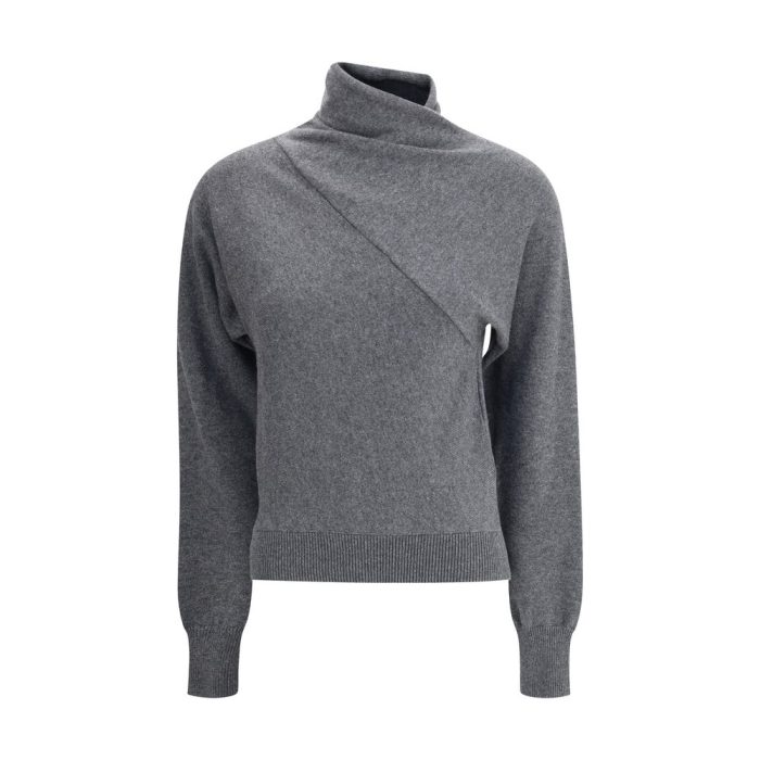Tom Ford’s Cashmere Sweater is a luxurious, wrap-around garment. Featuring a draped high neck, it has a ribbed hem and cuffs that enhance the fit, offering comfort and timeless elegance. Perfect for adding a sophisticated touch to any look.