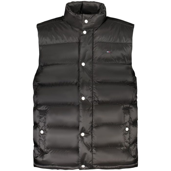 Elevate your wardrobe with the epitome of cool, the Tommy Hilfiger Sleeveless Jacket. This sleek black number is an eco-conscious style statement, boasting a composition of 95% recycled nylon. Outfitted with two external pockets and a discreet internal pocket, it’s not just about looks but functionality too. Zipped up with snaps and accentuated with the iconic Tommy Hilfiger embroidery and logo, this jacket is designed for the modern trailblazer who commands attention.
