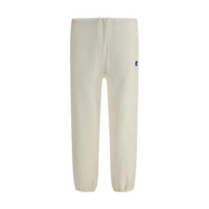 Cotton Sweatpants by Undercover x Champion feature an adjustable drawstring waistband for a customized fit. They feature two side welt pockets and a zippered welt pocket on the back, embellished with a size patch and iconic monogram applique. On the front, a colorful beaded patch adds a distinctive touch. Elasticized hems ensure comfort and a snug fit.