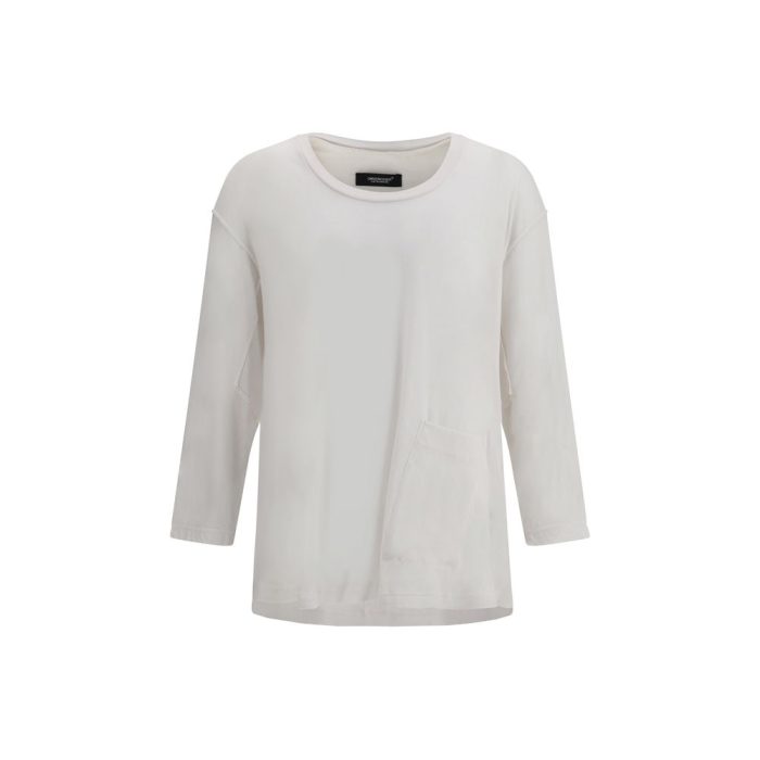 Cotton Long Sleeve Jersey by Undercover features a front neckline and inverted seams, giving a raw, contemporary effect. A welt patch pocket on the front completes the design, adding a distinctive functional and aesthetic detail.