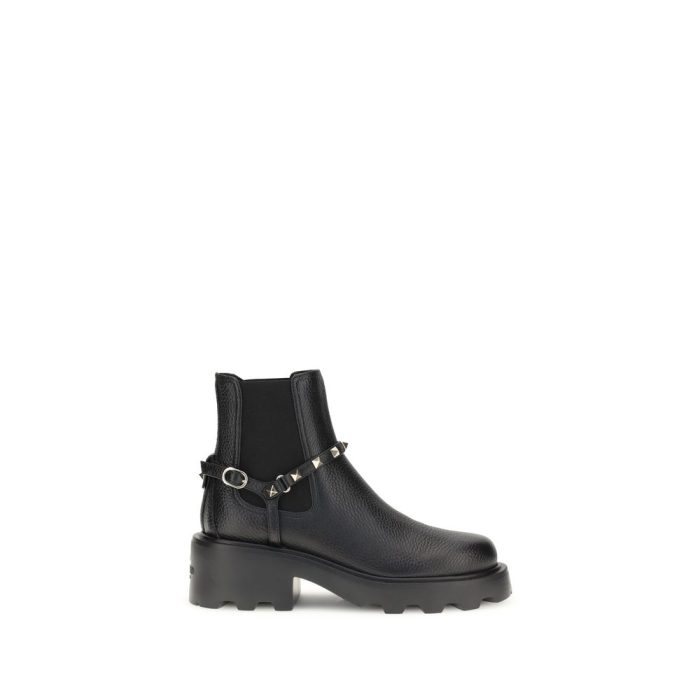 Valentino Garavani Black Calf Leather Bos Taurus Ankle Boots