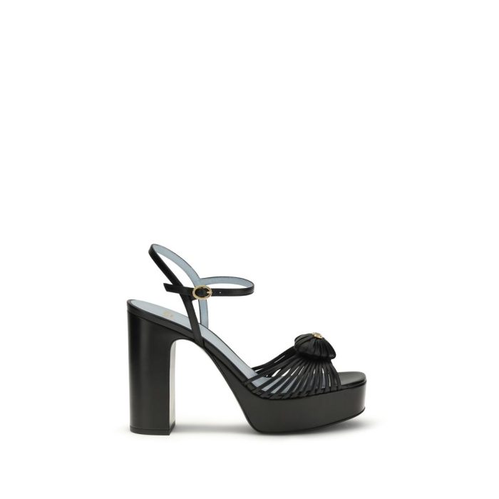 Valentino Garavani Black Calf Leather Bos Taurus Platform Sandals