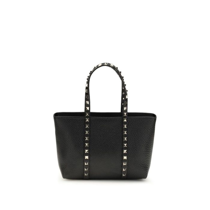 The small Rockstud tote Bag by Valentino Garavani is crafted from granata-grained calf leather and adorned with the iconic Rockstud studs in platinum finish. Its versatile design allows it to be carried by hand, over the shoulder, or crossbody thanks to the leather handles and removable, adjustable strap. The piece is completed with a zip closure, protective feet at the base, and an interior lining, making it an elegant and functional accessory for any occasion.