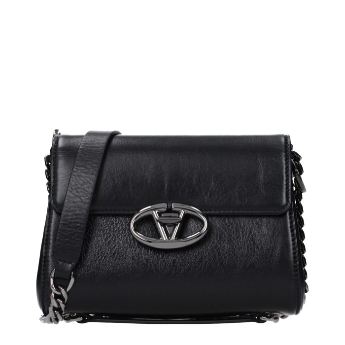 The product with MPN B0Q64IAP0NO and code F85379 leather in black is a crossbody bags designed by Valentino Garavani. It has features like front logo, vintage effect, aged effect, scratching effect.