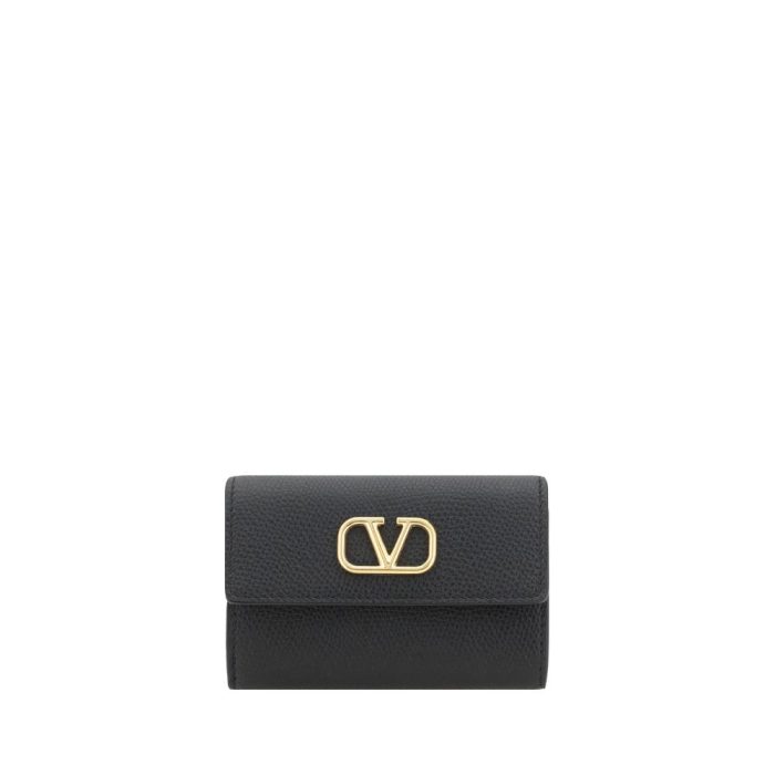 The Valentino Garavani grained leather Business Card Holder combines elegance and practicality in a sophisticated design. Made of grained leather, it offers a refined and durable texture. The trifold design ensures a compact and functional structure, with flap closure embellished with the iconic applied VLogo detail. Inside, it features card slots for optimal organization and a zippered slit pocket, ideal for safely storing small items. A luxury accessory perfect for business and everyday wear.