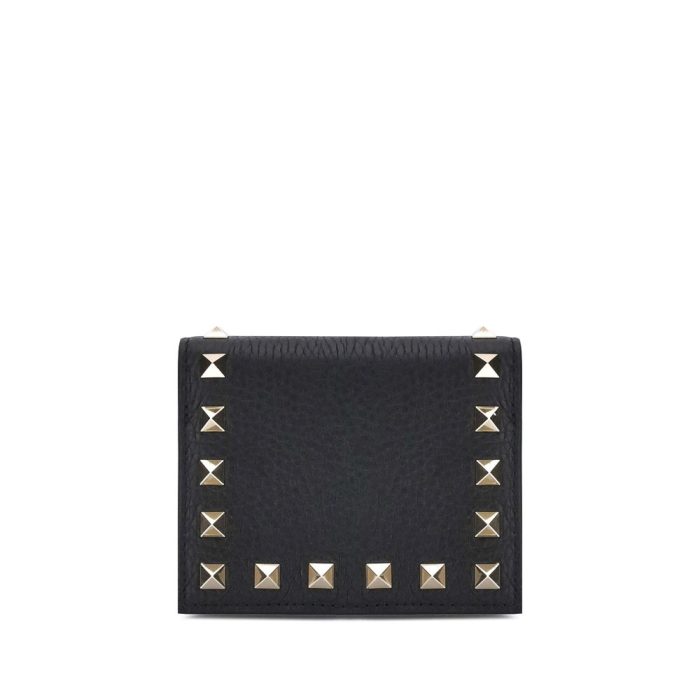 The Valentino Garavani Rockstud Wallet is an elegant accessory with a strong character, ideal for those seeking style and functionality in a compact format. Made of fine grained leather, it stands out for its unmistakable profile decorated with the brand’s iconic Rockstud studs. The bifold model features six card slots, a banknote compartment and a practical zippered coin compartment, offering perfect space organization. The interior snap-button closure ensures security and practicality.