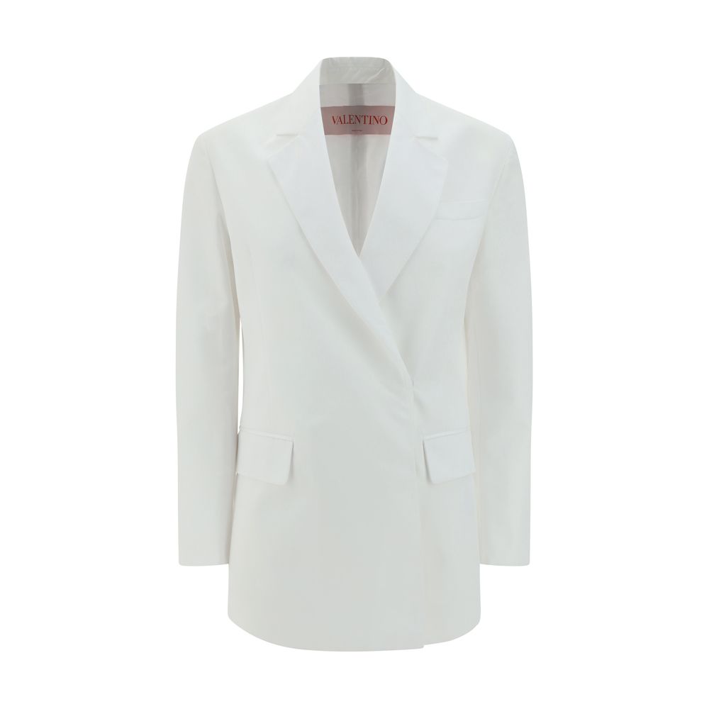 Cotton Blazer Jacket by Valentino featuring classic lapels, two front welt pockets with flaps, one welt breast pocket with flap, double-breasted front closure by concealed snap buttons, two side vents, monochrome pattern, oversize fit.