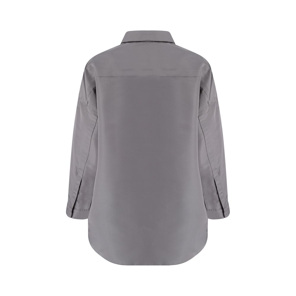 Silk jacket from Valentino, classic collar, front closure by concealed snap buttons, two side welt pockets, monochrome pattern, oversize fit.