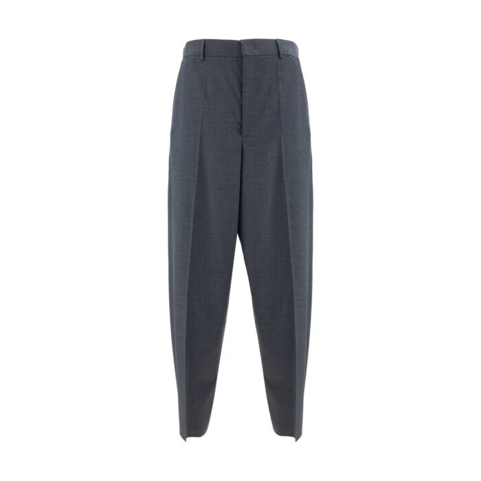 Virgin Wool Pants by Valentino, front button and zipper closure, two side slash pockets, two welt pockets at back, waistband loops, mélange pattern, regular fit.