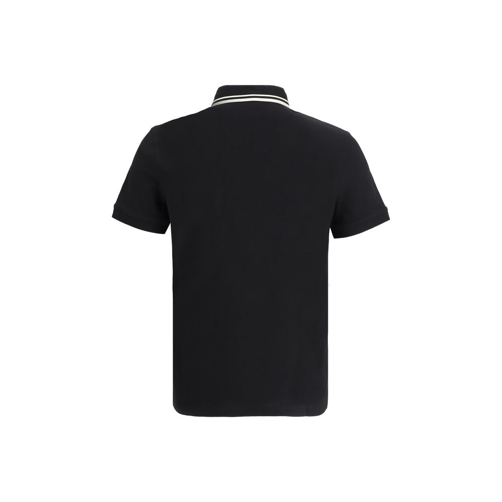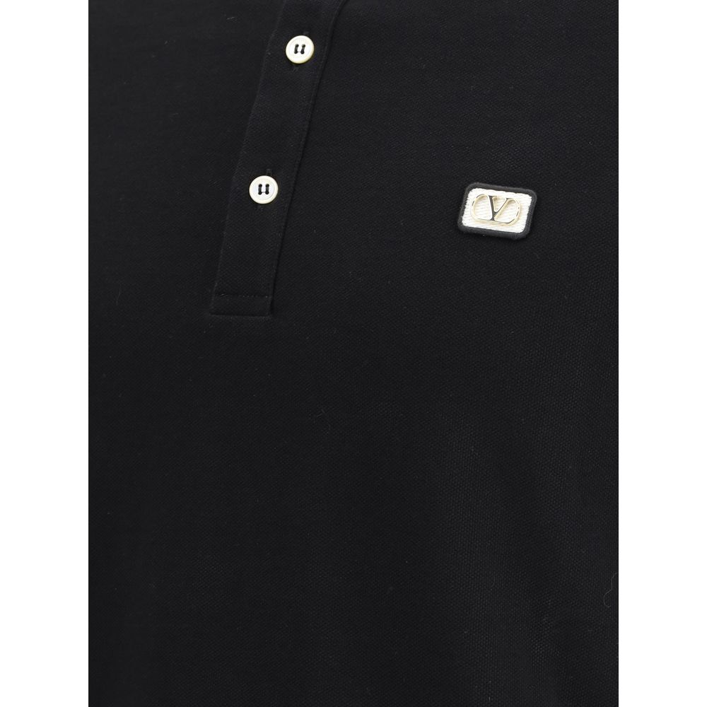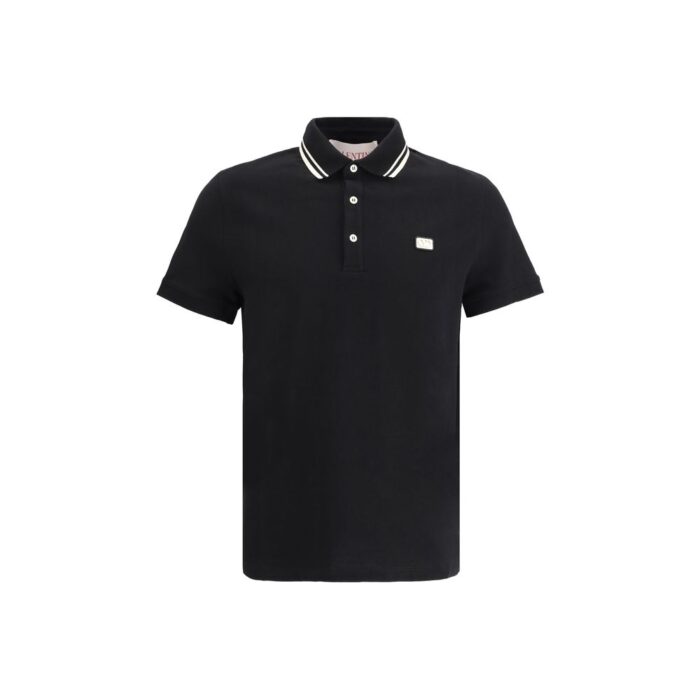 Cotton Polo Shirt by Valentino featuring classic ribbed collar, front buttons, contrasting brand iconic logo patch detail applied to front, monochrome pattern, regular fit.