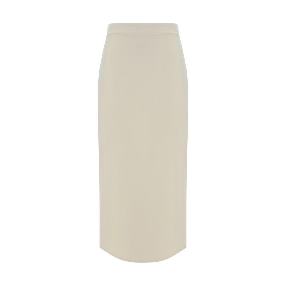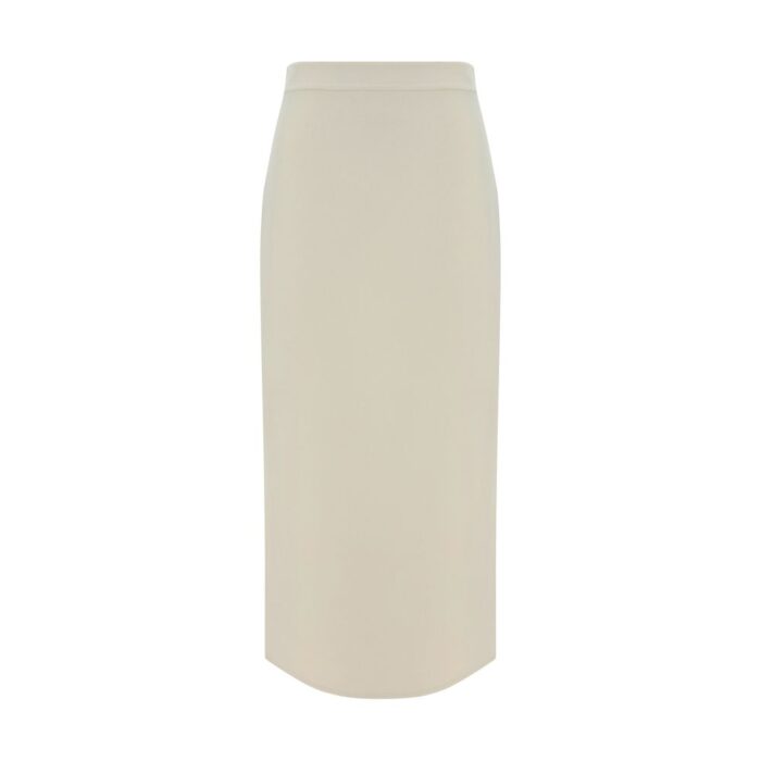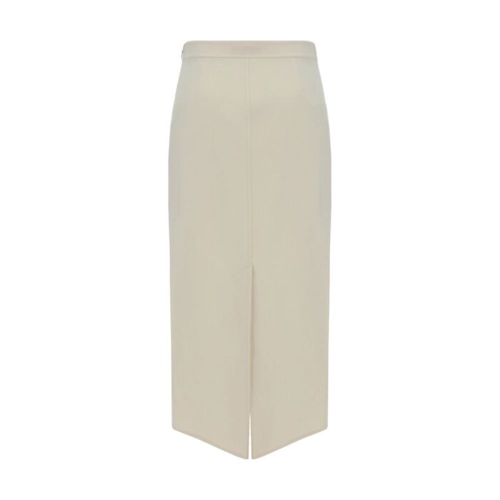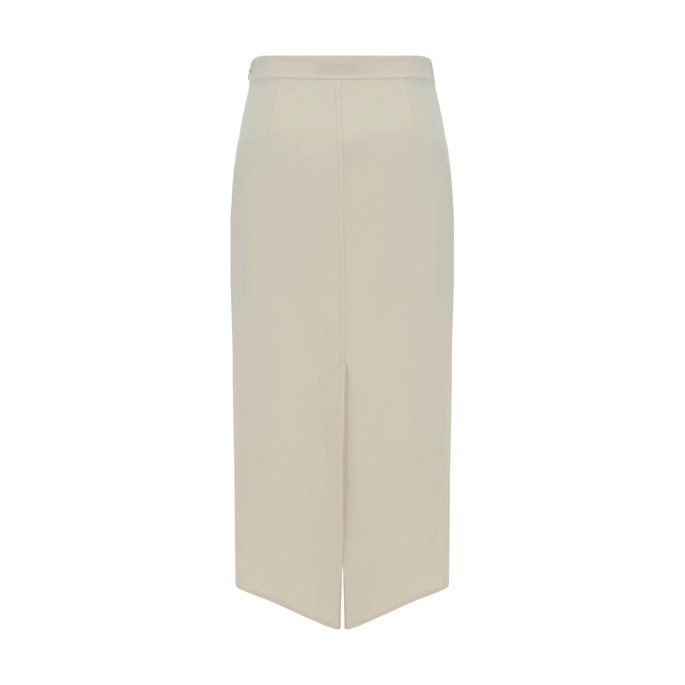 Virgin Wool Solid Skirt by Valentino, midi style, concealed side zipper closure, back panel slit, monochrome pattern, regular fit.