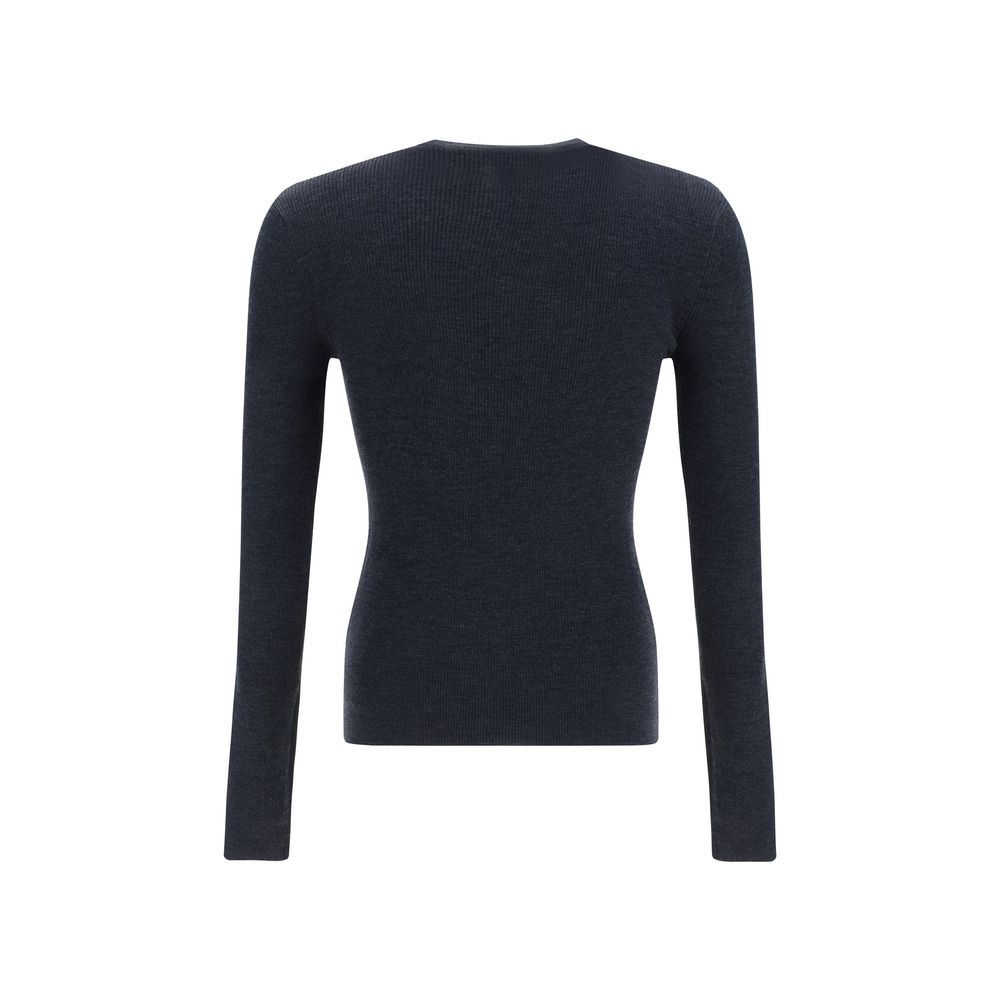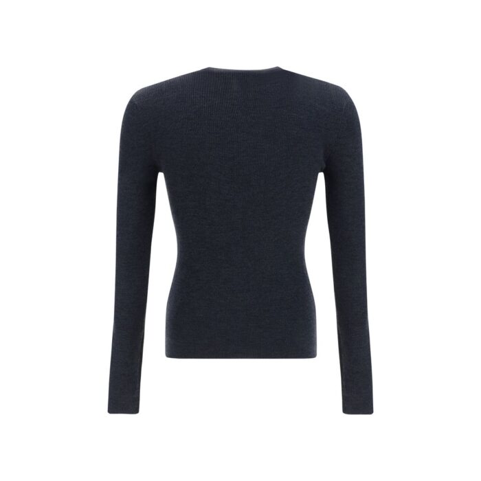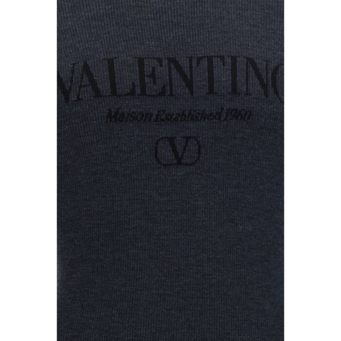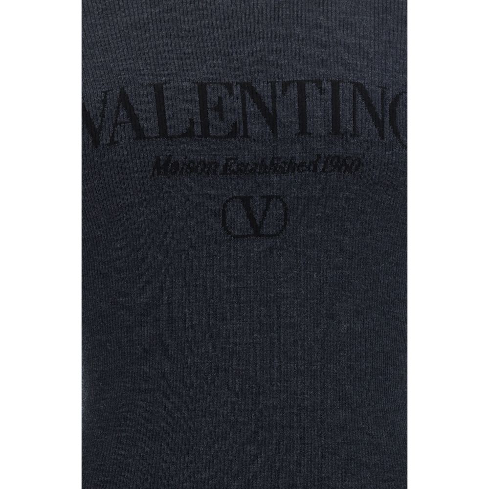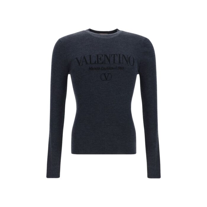 Virgin Wool Sweater by Valentino, ribbed crew neck, contrasting iconic brand monogram at front, monochrome pattern, fitted fit.