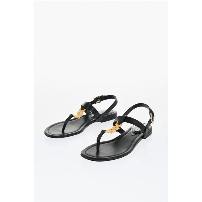 Victoria Beckham Leather Thong Sandals with Goldene Effect Detail