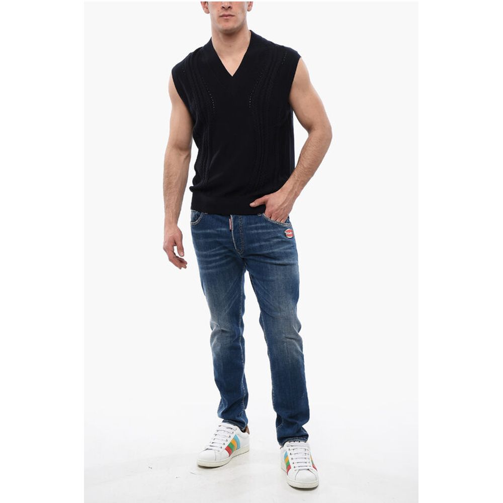 Viktor & Rolf Cable Knit Cotton Blend Vest with V Neck