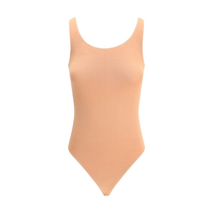 The Jamaika Body by Wolford is a chic and versatile piece, designed for comfort and style. The stretch design adapts perfectly to the figure, offering an impeccable fit. The rounded neckline adds a touch of sophistication, while the sleeveless Brazilian cut with thin straps gives a seductive and feminine look. The classic snap button fastening at the bottom ensures practicality and comfort, making this bodysuit ideal for wearing under dresses or as a stand-alone piece for a more daring look.