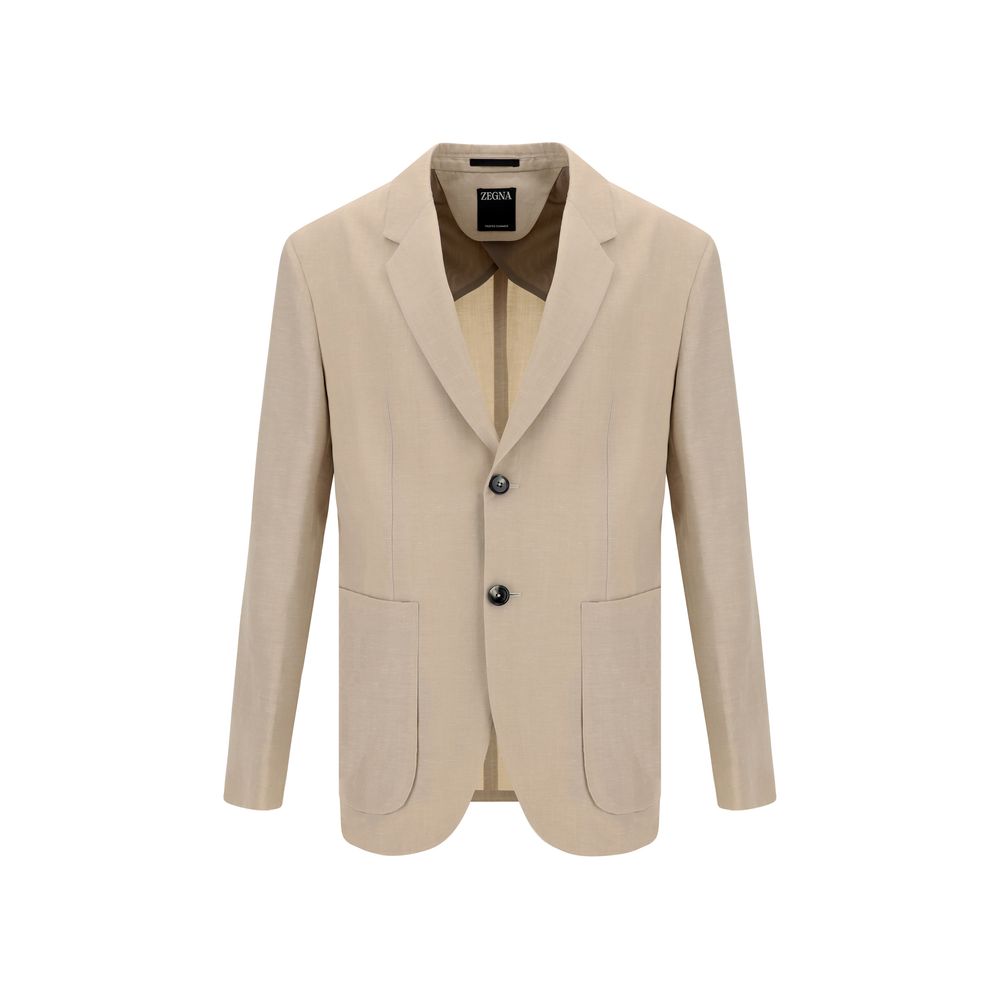 Wool Blazer Jacket by Zegna, double-breasted front closure with contrasting buttons, classic lapels, two welt patch pockets on front, back slit, regular fit.