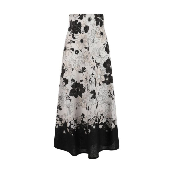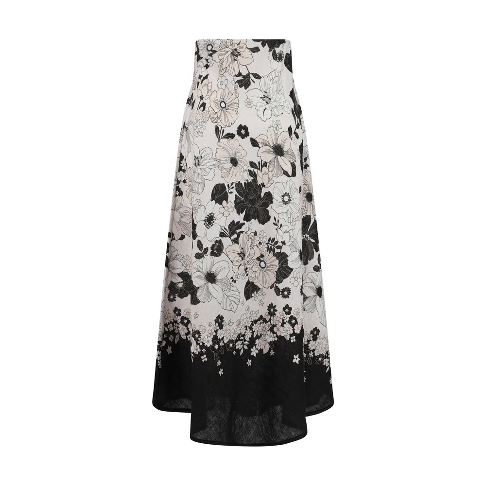 Linen Long Skirt by Zimmermann, featuring an elasticized waistband, all-over repeated multicolored floral pattern, straight hem, regular fit.