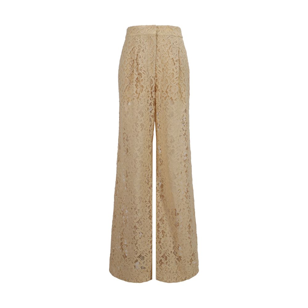 Cotton Natura Pants by Zimmermann, wide-leg style, zipper and hook-and-eye closure, two side welt pockets, two back slit pockets, all-over perforated lace desing, regular fit.